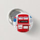 This birthday badge features a red London bus with balloons and can be personalized for a kid's birthday party.