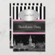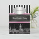 London Skyline BW Black & White Stripe Invitation Pink Ribbon Collection - Bachelorette Party Invitation