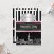 London Skyline BW Blk Wht Strp Pink Bachelorette Invitation