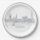 London Skyline With Big Ben Blue Ink Sketch Paper Plate
