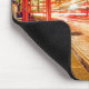 Spice up your time on your computer with this artistic mouse pad featuring a red telephone booth and blurred bus on a city street at night in London England! The font and colour of the text can be changed to fit your preference.