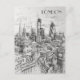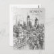 This travel postcard, in hand drawn sketch-style, showcases a view of London's cityscapes with the buildings such as the Gherkin, the Shard, and the Big Ben.