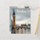 London with Big Ben and red bus watercolour art post card
