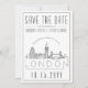 A unique wedding save the date invitation for a marriage taking place in the beautiful city of London. This invitation features a stylised illustration of the city's unique skyline with its name underneath. This is followed by your wedding day information in a matching open-lined style. On the reverse side of the invitation is a deep grey colour to complement the look and feel. All individual elements of the invite card are unlocked so feel free to change any details necessary such as font sizes, styles, and more by using the customisation function. You can add a photo to the reverse side and even add a black and white filter to it to match the front style. Have fun being creative and making it your own.