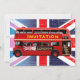 This cool wedding invitation features a well-known vintage red Routemaster bus, a true symbol of London and England with the Union Jack in the background.