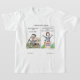 The t-shirt feels and looks great quality, a good thick cotton. It will be a little big for my son, but that means he will be able to wear it and not out grow it too soon. The print was as described on the order when personalised. True size, shape and colour T-shirt- thanks.