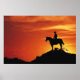 PAINTING OF A LONE COWBOY ON HORSEBACK WITH THE SUN SETTING BEHIND HIM