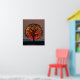 This artwork features the silhouette of a lone tree standing against a large, warm-toned sun at sunset. The strong contrast between the dark tree and the glowing sky creates a striking and contemplative scene, symbolizing the passage of time, the quiet end of the day, and the silent connection between nature and light.
