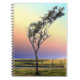 An art design of a lone tree with a dramatic sky and fields in the distance.