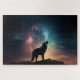 Lone Wolf Howling at Colourful Nebula Jigsaw Puzzl Jigsaw Puzzle