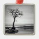 This black and white photo features a long exposure shot of a lonely tree bereft of leaves in Winter, Millarochy Bay, Loch Lomond.