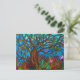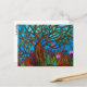 Postcard of mine own drawing with a lonely bird on a tree in colourful surroundings.