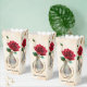 This design features the graceful outline of a minimalist vase cradling a vibrant rose, symbolising the profound beauty found in simplicity. The delicate interplay of light colours in the background enhances the quiet drama of the solitary flower, while subtle gold accents add a touch of sophistication, creating a serene yet striking visual statement.