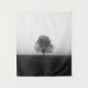 Landscape photograph of a loney tree wrapped in fog post processed in black and white for dramatic feeling.