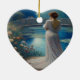 A beautiful woman is on the front and back of a heart-shaped ceramic Valentine tree ornament.