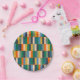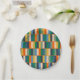 Long Blocks Retro Modern Checked Pattern Paper Plate