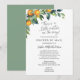 A baby shower by mail invitation is perfect for those that live a long distance from loved ones, but still want to shower the parents to be with love and gifts to prepare her for baby's arrival. This long distance shower by mail invitation features greenery border with orange clementines with the request poem "It’s difficult to live so far away