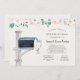 A baby shower by mail invitation is perfect for those that live a long distance from loved ones, but still want to shower the parents to be with love and gifts to prepare for the arrival of their baby. This long distance shower by mail invitation features a hand painted mailbox filled with white and blush flowers and the request poem "It’s difficult to live so far away When Baby Anderson is on the way. Gathering loved ones can be so hard So if you like, please mail your gift or card. And as they arrive day by day, They’ll feel all your love from far away." Customise with your wording. Click "Customise further" to edit the font style, size and colour if desired.