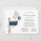 A baby shower by mail invitation is perfect for those that live a long distance from loved ones, but still want to shower the parents to be with love and gifts to prepare for the arrival of their baby. This long distance shower by mail invitation features a hand painted mailbox filled with blue and pink balloons and the request poem "It’s difficult to live so far away When Baby Anderson is on the way. Gathering loved ones can be so hard So if you like, please mail your gift or card. And as they arrive day by day, They’ll feel all your love from far away." Customise with your wording. Click "Customise further" to edit the font style, size and colour if desired.