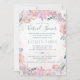 Rustic modern style pastel pink blush watercolor floral bridal shower virtual zoom party invitation template featuring hand-drawn peony roses with teal blue foliage and blooms on a washed painted dusty rose background. A geometric chevron pattern on reverse ++++++++++++++ The invite is suitable for spring or summer, rustic bohemian garden theme virtual bridal shower, bridesmaids brunch, or bachelorette online parties.