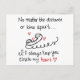 A post card for a friend or loved one in a long distance relationship. No matter the distance or time apart I'll always keep you close to my heart.