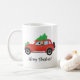 Long-haired Chihuahua driving a car with a tree Coffee Mug