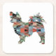 Long Haired Chihuahua Geo Silhouette Plaid Square Paper Coaster