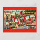 Colourfully illustrated, vintage postcard greeting from Long Island, New York. It's an old postcard repurposed now on a new postcard to use for any occasion.