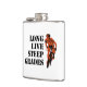 Well made flask, a little better than I had expected. Flask came in clear plastic box which gave it a nice presentation when I took it out of the zazzle packaging. Image is not printed on flask but on sticker. Don't know how this will hold up I haven't used it yet. This would make a Great gift! I plan to purchase more for friends! Cheers. I thought a little brighter than computer. Very crisp, writing wasn't