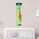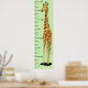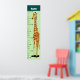 Adorable drawing of a giraffe with a long neck on the growth chart poster. The green background color can be changed. The top color is an image that can be moved or kept on. Keep or change it, when you customize it. Track your child's growth with this growth chart. Begins at 17 inches and ends at 65 inches. Change the "Name" on the chart.