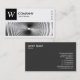 A business card template with a long rectangular image/photo area with a close-up photo of typewriter type leavers which alternatively can be replaced with your own image or photo and with a panel in the top left for a monogram or logo which includes a "W" as an example monogram which can also be changed. The design is balanced with four small rectangular text based symbols on the right created with the Semaphore symbol font. The white area is also a frame mask making it easy to position and resize a photo underneath. Company name and business type/quote on the front with name and contact details on the back in white on a contrasting dark grey background. Can be adapted to a variety of businesses and other uses.