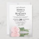 This wedding invitation is elegant, lush, and romantic. It features a gorgeous photo of a single long stemmed pink rose lying on its side reflecting in water with waves and ripples. The back is a pale marbled blush colour. Beautiful way to invite your friends and family to share in your special day.