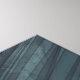 This long, vertical abstract painting has layers of light, inky texture in soothing dark teal and indigo tones with gold accents.
