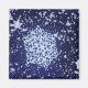 A 3D close-up of a snowflake against a background of falling flakes in a dark winter night sky.