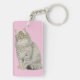 A colour pencil drawing of a gorgeous longhair striped Maine Coon Tabby Cat adorns this customisable keychain!