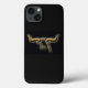 A simple illustration of a Longhorn, simulated raised and 3D with a back glow on a dark background. By Dwight Bennett from NatureWorld Art.