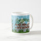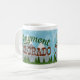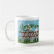 Longmont Colorado neo vintage travel poster wall art in cartoon retro style. It features snowy mountains and forest below with fun and happy retro text.