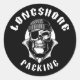Dark alley skull, in a skull cap & eye-patch, with, "Longshore Packing" in Gothic lettering. Comic book zombie-packing-menace badness, original ink drawing. T-shirts, sweats, buttons, stickers, gifts.