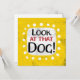 "Look At That Dog!" is a fun text design with a white accent shape surrounded by white whimsical textured dots.