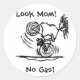 A cute pencil sketch in green of a bicycle rider popping a wheelie. The text reads "Look Mum! No Gas!" A fun gift for your favourite bicycle rider or environmentally conscious friend - or maybe for yourself. The fun of bicycling with a healthy lifestye and save the world theme.
