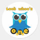 Owl design baby's first birthday T-shirts, bodysuits, mugs, magnets, cards, and more with text that reads "Look Whoo's 1"!