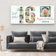 Custom 16th birthday banner which you can personalise with a name and some of your favourite photos. The photo template displays your pictures in a photo collage which forms the number 16 as well as one main square picture. The design reads "look who's 16 .. Happy Birthday [your name]".