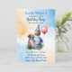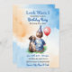 A sweet customisable first birthday invitation for a boy's birthday party. This has a sweet theme of a little baby boy holding a balloon sitting next to his puppy dog. It is done with a whimsical watercolor style by ai. So, if your little boy's best friend is his puppy dog, this theme will be perfect for you.