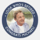 Add an elegant personalised touch to retirement party favours and invitations with stylish navy blue and white round stickers / envelope seals. The picture and all wording on this template are simple to customise. (IMAGE PLACEMENT TIP: An easy way to position a photo exactly how you want is to crop it before uploading to the Zazzle website.) The modern navy blue and white design features one photo of the retiree and retro vintage art deco typography. It can be customised for any occasion or to include a favourite quote or funny saying. The minimal classic design has a professional look suitable for him or for her, a retiring coworker, employee, friend or family member. Cheers, Congratulations and Happy Retirement!