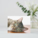 Brown with white tabby cat and green eyes looking at you photo postcard