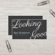 Simple and stylish dark grey business card. The front of the card features white text on the front stating "Looking Good". Wonderful card for stylists, salons, or even interior decorators.