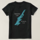 A loon and babies on the lake in a backdrop of green. On the back side is a map of Butterfield Lake.