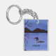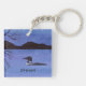 A watercolor painting of a loon on an evening lake adorns this customisable keychain!
