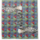 Two loony loons over a pattern of colourful images arranged in a quilt fashion decorate this cute and silly shower curtain.