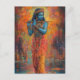 Lord Krishna playing the Flute Orange Blue Art Postcard